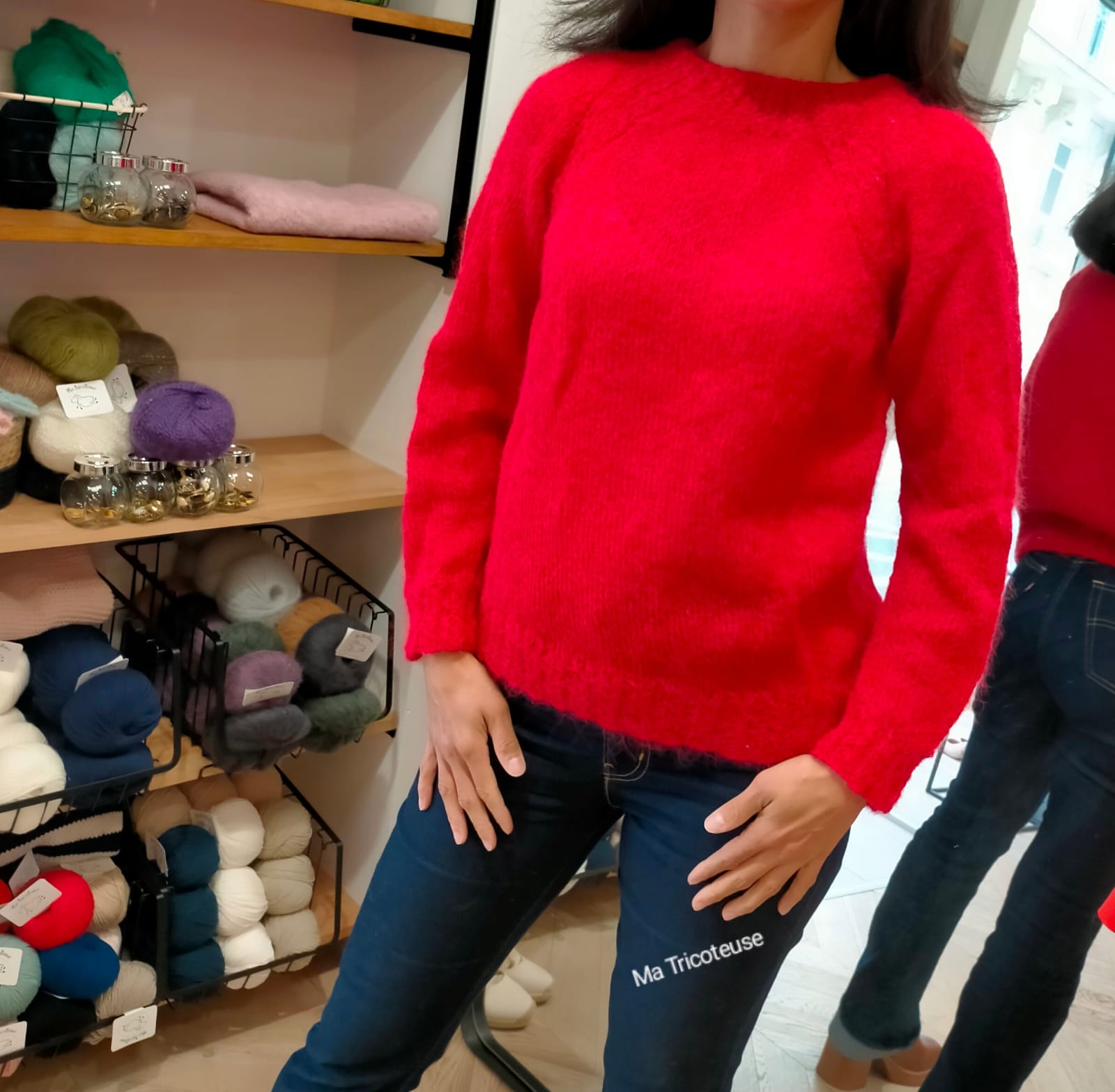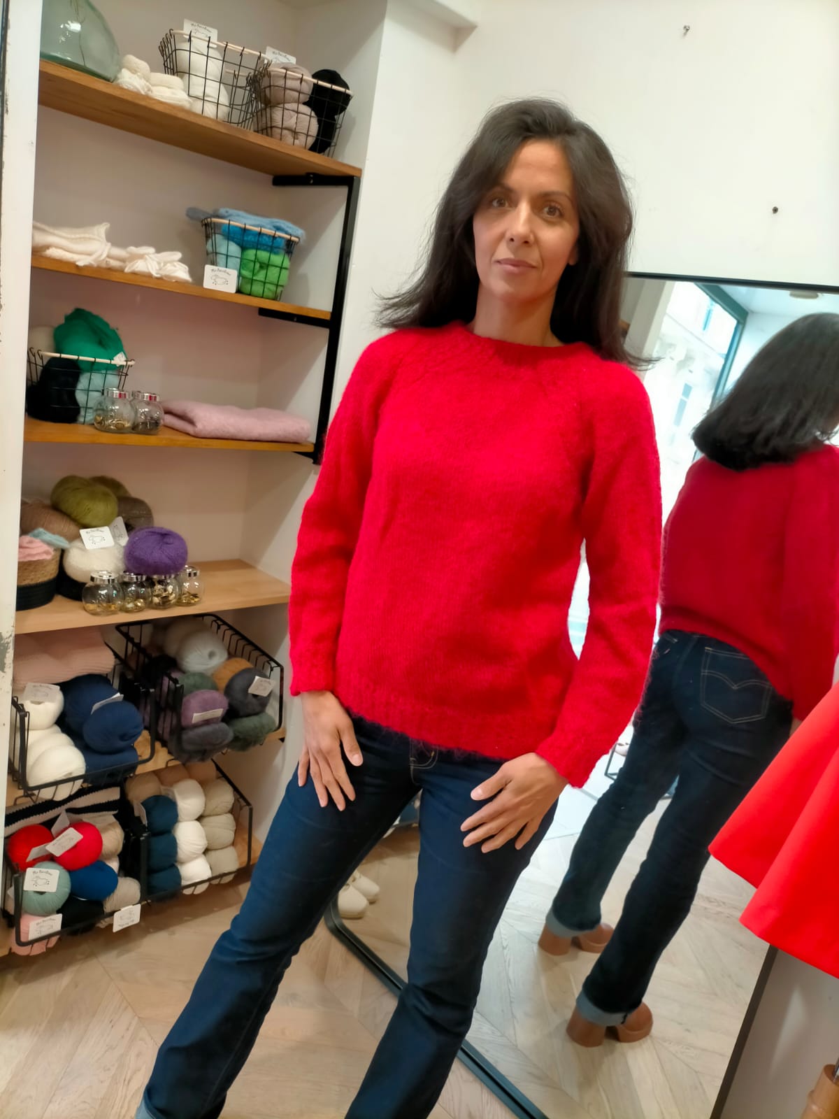 Le pull Zélie se tricote avec les pelotes Andeline incluses dans le kit.
