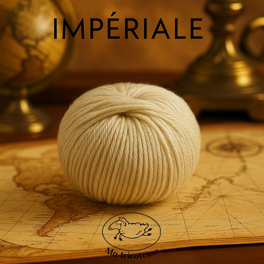 Impériale est un fil à tricoter d’exception, naturel, sans teinture. Chaleur exceptionnelle, thermorégulatrice, 30% plus chaude que la laine de mouton, douceur incomparable. Idéale à porter à même la peau, comme pour le pull Hortense.