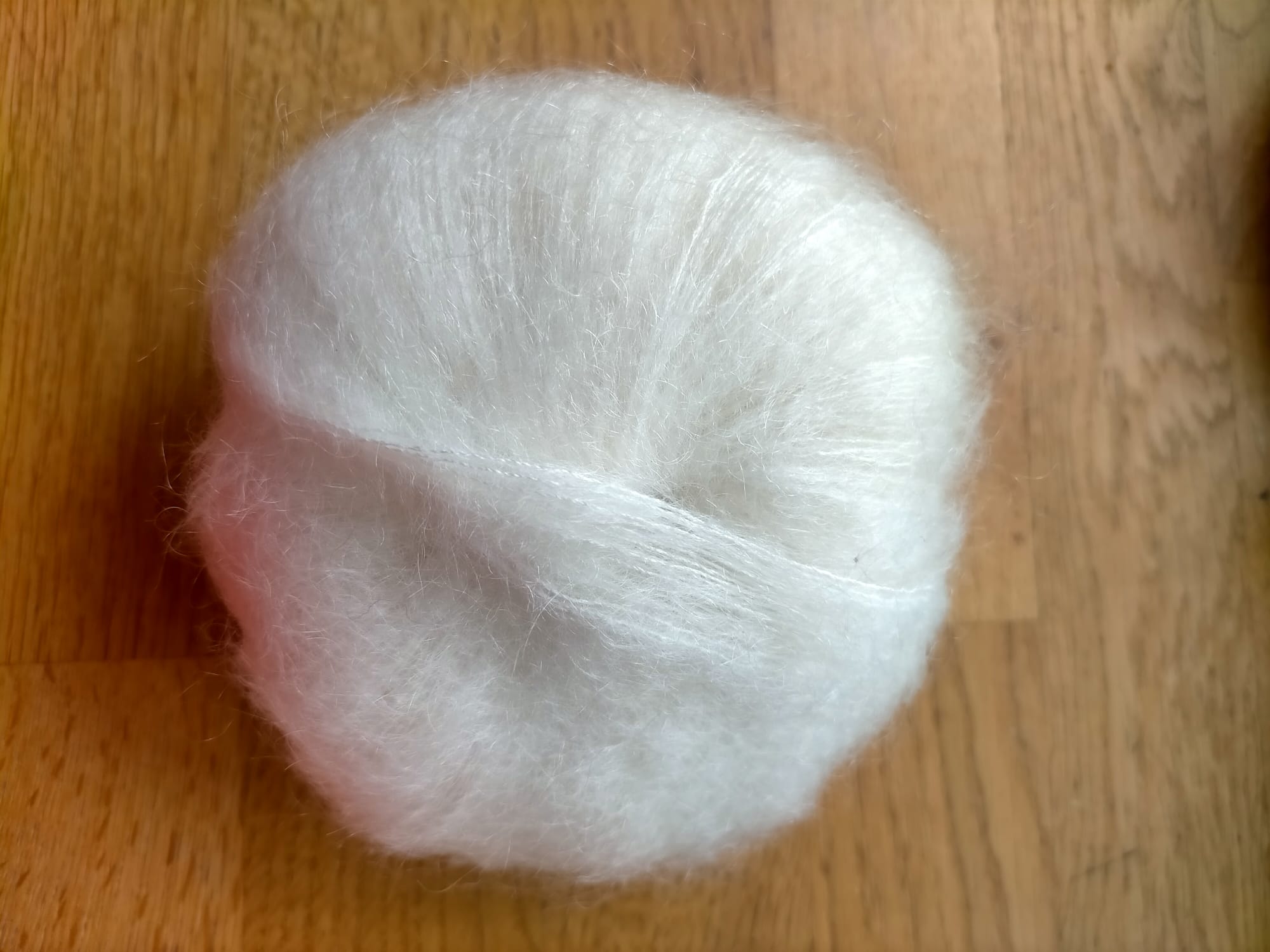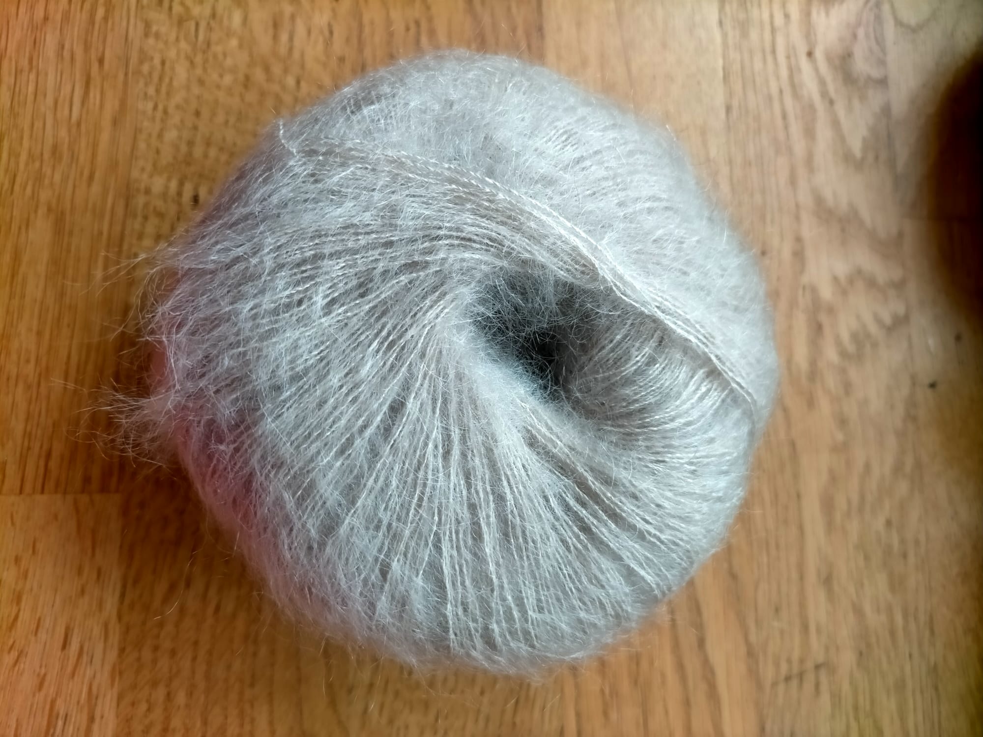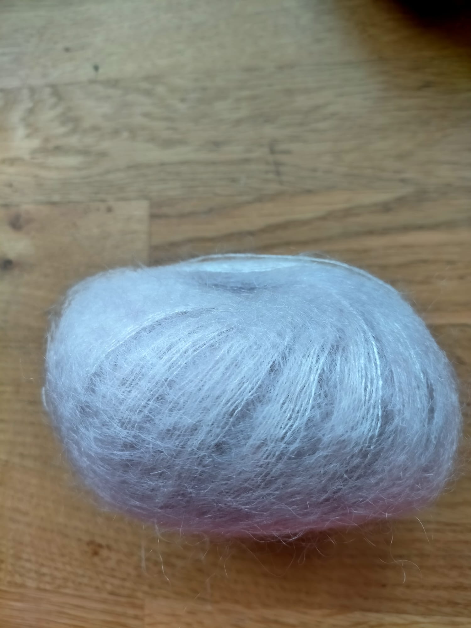 La pelote Sublime pèse 25g pour 210m ; composée de 75% Mohair Super Kid 25% Soie, elle se tricote avec des aiguilles n°4.