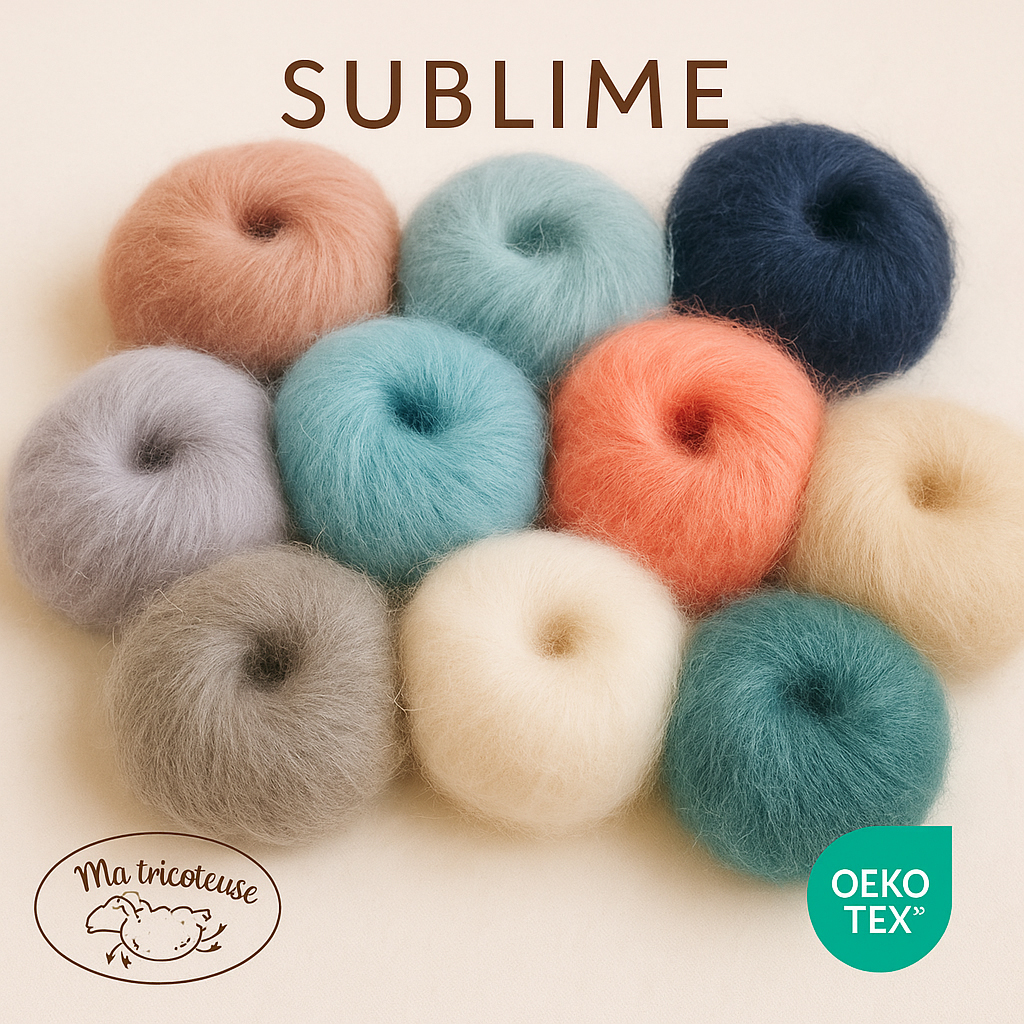 Sublime associe la légèreté du mohair à l’éclat délicat de la soie. Ce fil raffiné et aérien enveloppe vos créations d’une douceur soyeuse pour des tricots intemporels. Sa lumière veloutée se décline en une multitude de coloris. Idéale pour tricoter des pulls comme le pull Agathe ou encore le cardigan Litzie